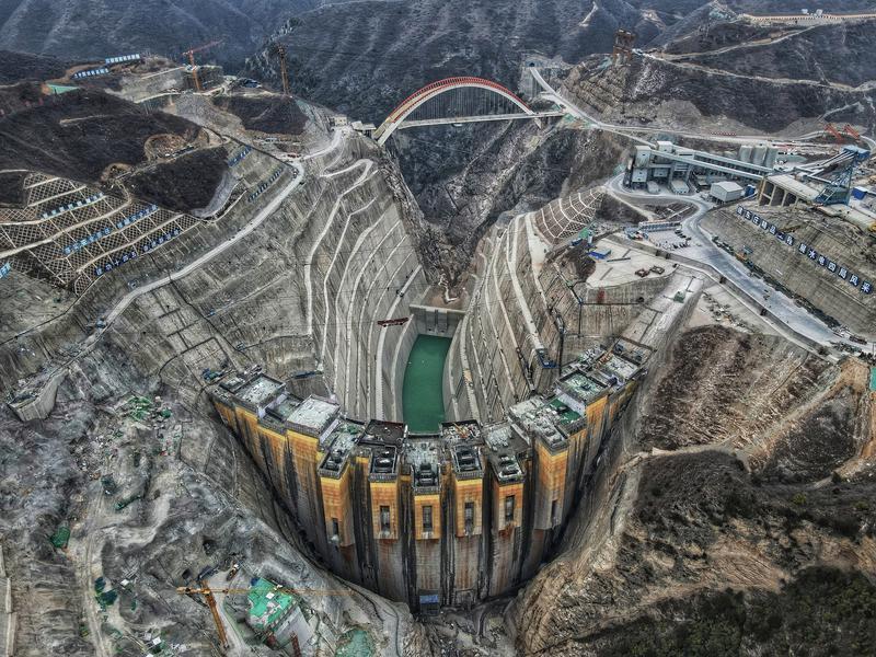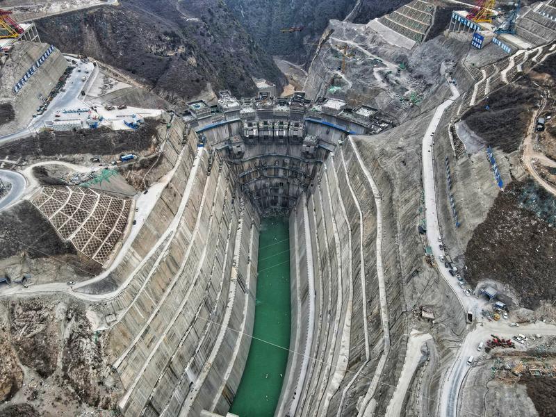 2月2日,航拍东庄水利枢纽工程。