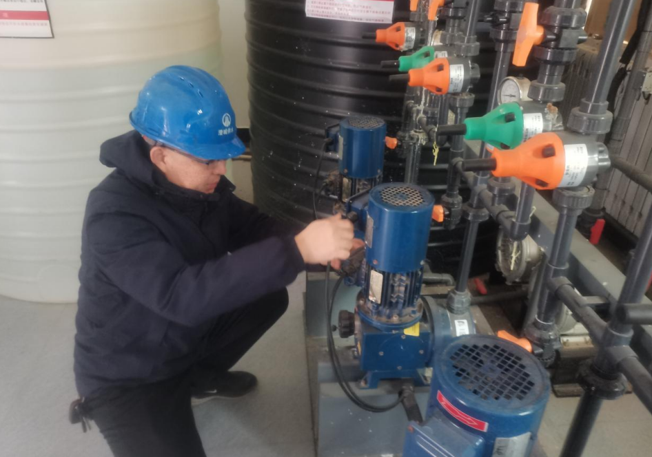 澄北水厂值班人员在维护保养加药设备(本文图片由陕西省betvlctor伟德手机版集团澄城县供水有限公司提供)