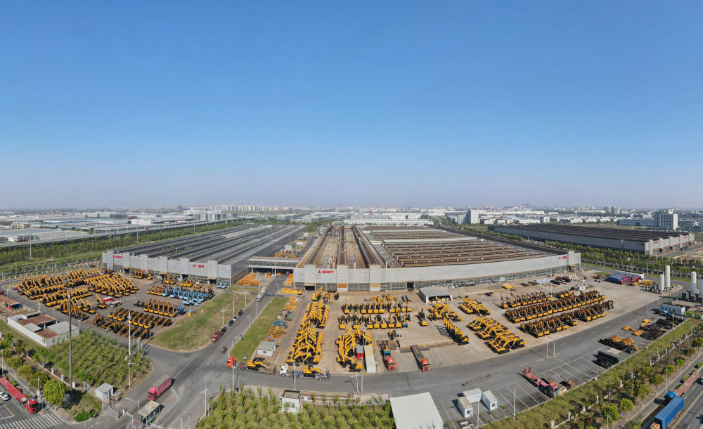 空中俯瞰上海三一重机股份有限公司外景(无人机全景照片,2025年4月15日摄)。